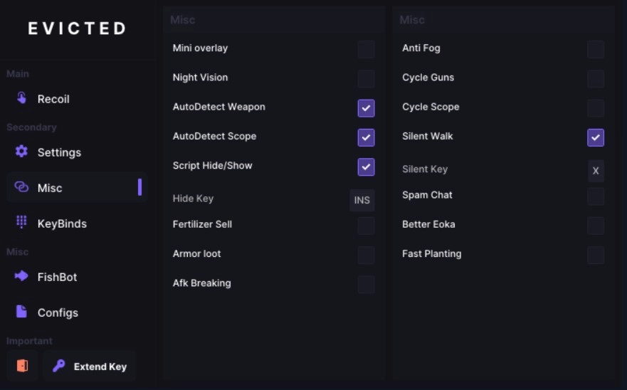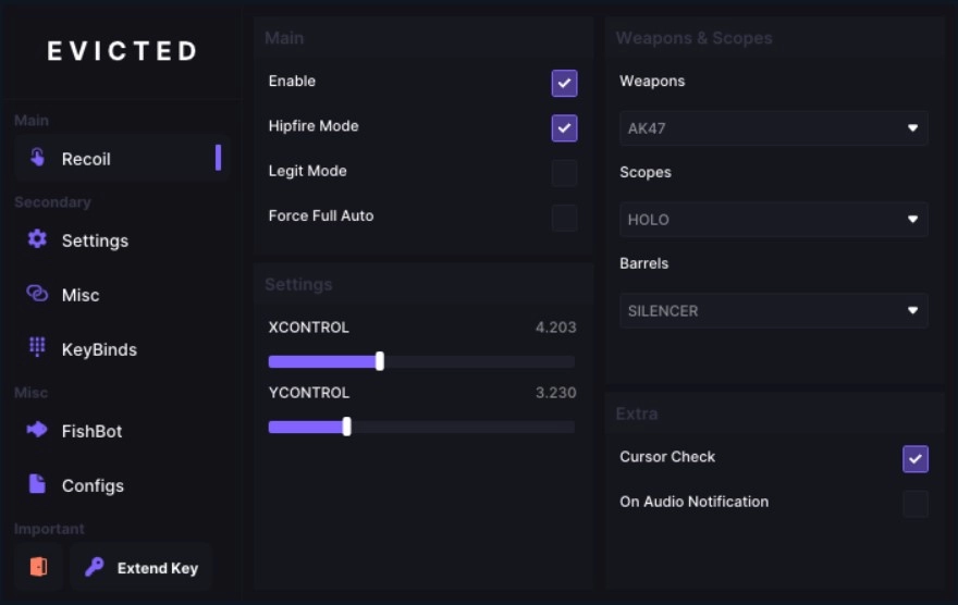 С использованием автоматического определения оружия в руках, макрос Evicted сразу адаптируется под ваш стиль игры. Это означает, что вам не придется тратить время на ручную настройку для каждого оружия. Просто возьмите нужное вам оружие, и макрос уже готов к работе.