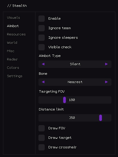 Aimbot Type – Silent (no mouse movement) or Mouse (moves cross-hair).
